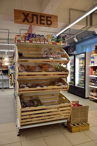 Стеллаж хлебный пристенный. Предназначен для выкладки хлебо-булочных изделий.