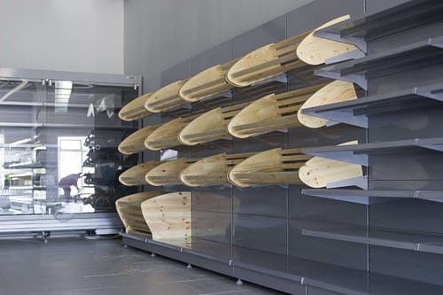 Фронтальные размеры секций стеллажа подобраны таким образом, чтобы заполнение торгового зала было максимально эффективным.