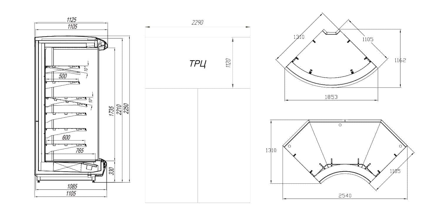 | Модификация витрины | Площадь загрузки, м? | Полезный объём, м? | Номинальная потребляемая холодильная мощность, Вт*? | Номинальное энергопотребление за сутки, кВт*ч*? | Вес (без боковин и упаковки), кг |
