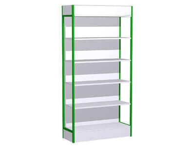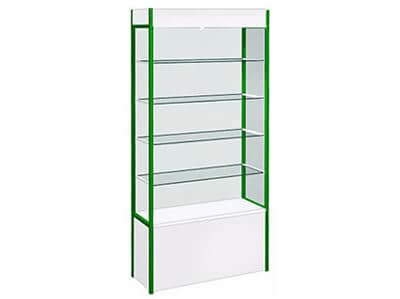 Стеклянные поверхности визуально эффектно представляют большой ассортимент на компактной территории. При необходимости создаются торговые островки из нескольких стеллажей, надежно скрепленных друг с другом.